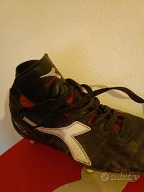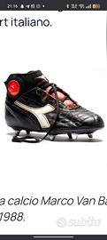 scarpe da calcio Diadora firmate Marc Van basten fortunato ad averle trovate al tempo. Misura 42,5 . Ottimo stato usato pochissimo con 6 tacchetti in ferro avrò giocato 4/5 partite le tenevo in modo maniacale. Ingrassate e all'interno sempre giornali per la forma. Se possibile consegna a mano .. o spedizione