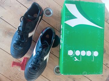 Scarpe da calcio Diadora del 1987 in pelle. Made in Italy. Usate due volte. Complete di scatola originale e chiavetta per i tacchetti.