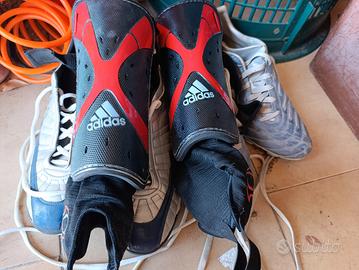 Vendo scarpe da calcio calcetto usate marca adidas come in foto, vestono 44 e un paio di parasstinchi marca Adidas taglia XL come in foto. Vendo anxhe separatamente