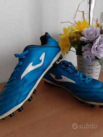 Scarpe da calcio Joma Aguila con tacchetti MG, adatte a campi con superfici sintetiche e naturali. Usate solo due volte, come da foto solo lievi segni superficiali laterali sopra i tacchetti. Non provviste di scatola originale.
