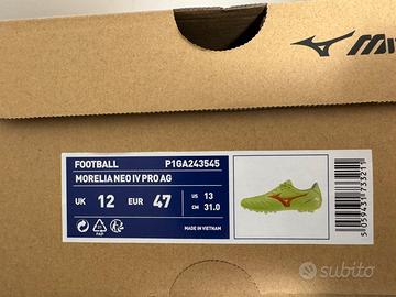 Vendo a causa di taglia errata, utilizzate solo una volta per provarle, sono praticamente nuove. Modello PRO con tecnologia in pelle di canguro in punta e suola AG adatta ai terreni con erba artificiale - taglia 47