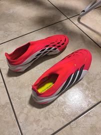 Vendo scarpe da calcio usate una volta su campo sintetico. Perfette condizioni. Vendo causa numero troppo grande. Non hanno stringhe e la scarpa aderisce perfettamente al piede. Ideali per campi sintetici o in erba asciutta. Pagate 2 settimane fa in negozio 95€