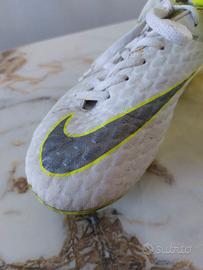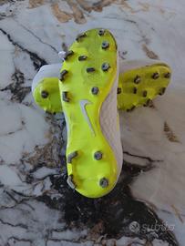 Scarpe da calcio marca Nike modello Hypervenom Phantom 3 numero 38. Colore bianco, grigio metallizzato e giallo. Suola in gomma, chiusura con lacci.