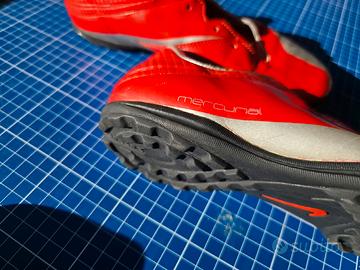 Scarpe da calcio Nike Mercurial. Taglia: EUR 37.5. Modello classico e performante, perfette per campi in erba sintetica (turf). Colore rosso e grigio. Leggere e reattive. Usate, ma ancora in buone condizioni e pronte all'uso. Spedite lavate. N.B: Mancanza dei lacci.
