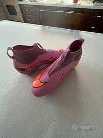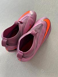 Scarpe da calcio Nike colore viola, taglia 38, in ottime condizioni. Utilizzate solo per circa due mesi e mezzo, sempre con cura. Non presentano danni strutturali: la suola è ancora in ottimo stato con tacchetti ben conservati, mentre la tomaia è pulita e senza strappi. Comode, leggere e ideali per allenamenti e partite su erba sintetica o naturale. Non ho la scatola originale. Per info o altre foto sono disponibile.