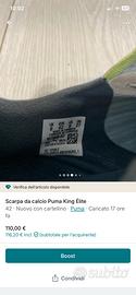 Scarpa da calcio, per campi sintetici, fascia élite inutilizzata in perfette condizioni a metà del prezzo originale