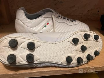 In vendita un paio di scarpette da calcio Pantofola d’Oro modello “Professionale”, artigianali italiane in pelle di alta qualità. Un classico del calcio italiano, perfette per chi vuole giocare con stile o per i collezionatori. ✅ Tomaia in pelle morbida con cuciture trapuntate ✅ Tacchetti fissi in plastica nera per terreno compatto (FG) ✅ Suola in gomma con motivo esagonale ✅ Bandierina tricolore italiana sul fianco ✅ Colore: bianco totale ✅ Taglia: 44 ✅ Condizioni: buono stato usate una volta 🎯 Ideali per chi cerca una scarpa da calcio classica, di qualità artigianale italiana autentica.