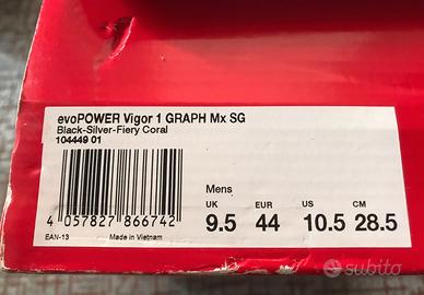 Scarpe da calcio Puma evoPOWER Vigor 1 GRAPH Mx SG, nuove con scatola (che è rovinata). Numero 44 (EUR) 9,5 (UK) 10,5 (US). Lunghezza: 28,5cm.