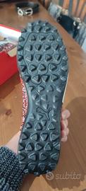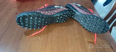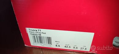 Scarpe da calcio Puma Truora TT, un modello versatile progettato per allenamenti su superfici sintetiche (Turf). Misura:42,5 Caratteristiche Principali Design:Presentano una tomaia nera con l'iconica striscia Puma bianca e una grafica a puntini rosso neon/arancione sulla punta e sui lati. Materiali:La tomaia è realizzata inpelle sintetica leggerae resistente, pensata per offrire un buon tocco di palla e durabilità. Suola:Dotata di una configurazione multi-tacchetto in gomma a basso profilo, ideale per garantire trazione e stabilità su terreni duri o erba sintetica. Comfort:L'interno ha una fodera morbida che si adatta alla forma del piede per una calzata confortevole durante il gioco.