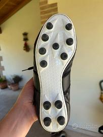 Scarpe calcio Ryal in pelle nera, taglia 42 ma calzano come un 43, indossate solo 3 volte ma taglia troppo grande, la lunghezza della suola è circa 27,5 cm (mia taglia Adidas copa pure 42,5), praticamente nuove, prese a negozio a 110€, la suola di queste scarpe è cucita come si vede dalle foto per una maggiore durata, contattatemi per altre info e foto!