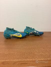 Scarpe da calcio, scarpe nike taglia 38, modello in collaborazione con kylian Mbappè, colore blu alternato da dettagli gialli e blu scuri, scarpe adidas predator taglia 38, colori principali nero e arancione con dettagli bianchi, entrambe le scarpe sono usate ma in buone condizioni, vendibili anche separatamente, 35 euro è il prezzo per una scarpa