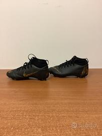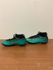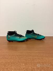 Scarpe da calcio nike, la prima scarpa da calcio, nike colore blu marino con dettagli neri e oro, scarpe nike in collaborazione con Cristiano Ronaldo nel mondiale 2018, taglia 32.La seconda, scarpa nike, colore nero con dettagli oro taglia 33,5, scarpe usate ma in buone condizioni, prezzo per singola scarpa 15 euro