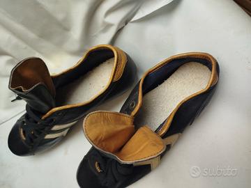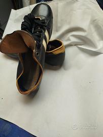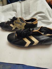 Scarpe da calcio vintage, Pantofola d'oro. Nuove, mai utilizzate, n° 41 bullonate con suola in vero cuoio, modello Marco Tardelli, marca Leone.