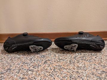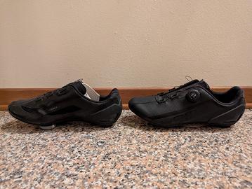 Vendo, perché troppo grandi, scarpe da ciclismo DMT nere taglia 44 con tacchette Look grigie.