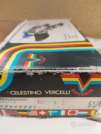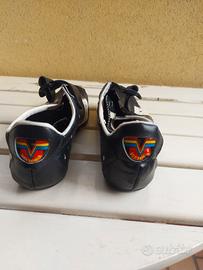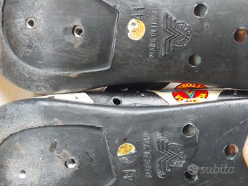 Scarpe da ciclismo vintage, anni 80, in pelle. Misura 41 1/2 . Complete di attacchi mai usati. Scatola originale. Marca Vittoria.