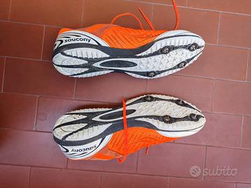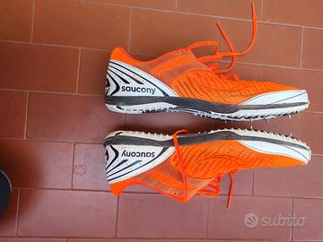 Scarpe chiodate per corsa campestre, marca Saucony, misura 45,usate solo per 5 gare,in buone condizioni