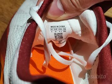 Vendo poiché i miei "passi per minuto" sono troppo bassi per farne uso ottimale di questa scarpa, e in più sono troppo lento 😅 Taglia "41", ma le altre taglie in americano e in millimetri (US8.5 & 265mm, che secondo le taglie di Asics o Nike sarebbero un 42) portano la scarpe ad essere più per un 42 Includo un set di solette Dynafish 5mm TPEE (più spesse di quelle incluse nella scarpa) per chi sia tendente più al 41, così il problema della taglia sfasata è neutralizzata Usate per 15km Vendo senza scatola Non spedisco Prezzo trattabile