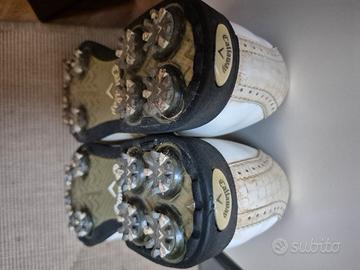 Scarpe da donna da golf Callaway, in pelle bianche e beige. Misura 38 italiana, UK 5, usate due volte. Vestono leggermente piccole.