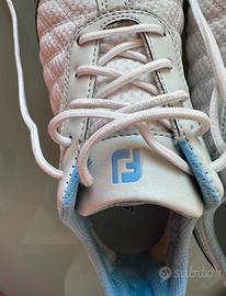 Scarpe n.38 in pelle e tela traspirante della marca Footjoy. Nuove, senza cartellino, mai indossate perché piccole.