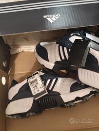 Scarpe da golf, marca ADIDAS, numero 46, comprate e indossate una sola volta, sempre rimaste nella scatola, è ancora attaccato il cartellino, piccolo segno di terra sulla punta della scarpa destra.