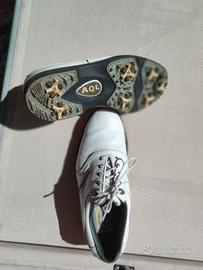 Scarpe da Golf in pelle bianca da uomo, tg 41 in ottime condizioni, usate pochissimo . FootJoy modello AQL è sinonimo di qualità a livello mondiale.Vendo perché non posso più giocare a golf.