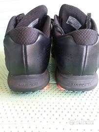 Suola in TPU, tomaia in microfibra con trattamento NeverWet, sottopiede anti-microbico Ortholite.