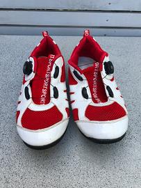 Scarpe da mountainbike usate poco, colore rosso e bianco nr 47, calzano molto poco, vanno bene per un nr 45. Traspiranti in tessuto tecnico, antiscivolo.