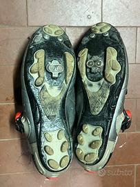 Vendo scarpe da mtb con tacchette per aggancio ai pedali, tg 45. Usate poche volte e poi abbandonate perché non mi sono mai abituato ad avere il piede agganciato. Qualche graffietto tipico da utilizzo ma davvero in ottime condizioni