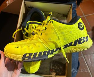 Scarpe da Padel Bullpadel in edizione per Paquito Navarro. Le scarpe sono state indossate esclusivamente 2 volte e sono state tenute nella loro scatola sempre. Vendo per inutilizzo. Prezzo trattabile.