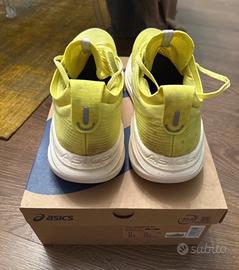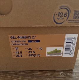 Scarpa da running asics gel nimbus 27 numero eu 45 perfette colore giallo con scatola originale Asics Gel Nimbus 27 running shoes, size EU 45, perfect condition, yellow color, with original box.