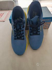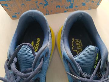 Scarpe da running Brooks Glycerin 21 da uomo, con una combinazione di colori blu e giallo. - Toma in mesh traspirante. - Intersuola ammortizzata. - Design sportivo. - Con dei piccolissimi segni