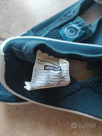 Scarpine da scoglio per bambino, taglia 36/37. La suola è dentellata per non scivolare. Colore turchese.
