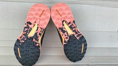 Reattive e dal supporto ottimale, queste scarpe da trail running Terrex Agravic sono progettate per le lunghe distanze e le avventure outdoor sui sentieri umidi e fangosi. La membrana in GORE-TEX impermeabile e traspirante ti protegge dalla pioggia per aiutarti a mantenere i piedi asciutti e la concentrazione alta. I rivestimenti antiabrasione migliorano la resistenza, mentre la linguetta rinforzata difende dai detriti. L'intersuola Lightstrike 2.0 offre un'ammortizzazione reattiva per garantire stabilità e comfort sui terreni accidentati, la silhouette basculante favorisce una falcata fluida e agile. La suola in gomma Continental™ con alette da 4 mm fornisce un grip affidabile sui terreni impervi e sul bagnato..