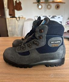 Scarponcini pedule in goretex e pelle di camoscio impermeabili brigie e blu Marca Scarpa Ottime condizioni taglia 38