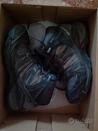 scarpe Salomon da trekking impermeabili (adatte a tutte le stagioni, anche a fondi innevati), molto resistenti, ottimo grip. taglia come da foto
