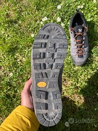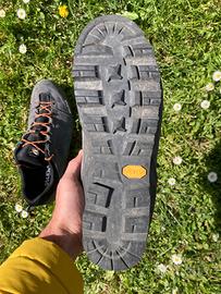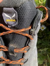Scarpe da trekking Salewa MTN Trainer nero/grigio con lecci arancioni. Suola Vibram e tomaia Goretex in ottime condizioni. Pochi segni di utilizzo. Ottime anche per ferrate.