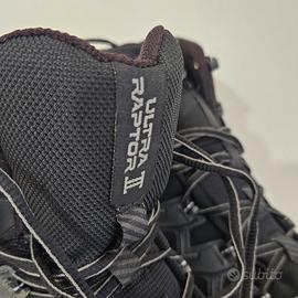 Ultra Raptor Mid II GTX è la versione mid-cut del modello trail running Ultra Raptor II, è ideale per utilizzi fast hiking ed escursioni con carichi leggeri. Impermeabile e traspirante grazie alla membrana GORE-TEX Extended Comfort. Il collarino morbido “Comfort Collar” protegge la caviglia dall’entrata di sassi o fango e integra lo spoiler easy-fit per la massima facilità di calzata. La tomaia è in tessuto mesh resistente alle abrasioni e traspirante, perfetta per utilizzi in tutte le condizioni. La tallonetta stabilizzatrice posteriore permette un perfetto controllo sui traversi. Il sistema di allacciatura è integrato con la tomaia a mezzo di passanti cuciti sul tessuto elastico interno e con rinforzi in alta frequenza sul mesh esterno: tale sistema permette di ripartire la tensione dell’allacciatura su tutta la tomaia ed avvolgere al meglio il piede per un perfetto comfort di calzata.
