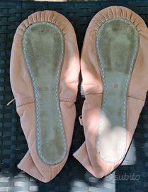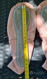 Scarpette danza classica Dechatlon, in morbido cuoio rosa, suola intera ed elastico.