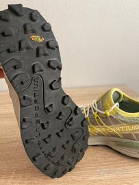 Scarpe donna La sportiva Ultra Raptor N40.5 molto comode,le punte nere come in foto sono scollate ma basta incollarle il resto della scarpa non ha niente di cui segnalare scatola la sportiva