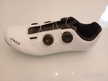 Vendo scarpe Ekoi tg.45 bianche nuove per errata taglia, provate solo una volta con i rulli...soletta carbon tech,doppio boa,per le misure consultare sito originale Ekoi