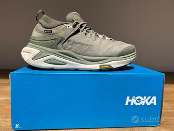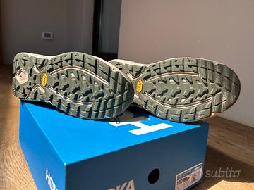 Nuovo modello da hiking di Hoka Kaha 3, uomo TG 44. Goretex. Acquistato solo un mese fa, ma con misura errata. Usato pochissimo per capire se cedeva. Scarpe robusta, comoda e performontante come nella tradizione Hoka. Ottime condizioni