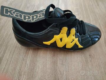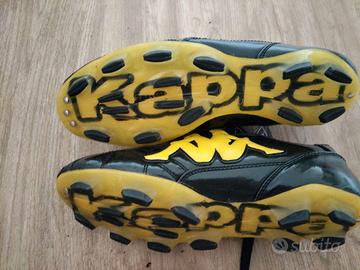 Vendo scarpe da calcio Kappa originali, taglia 40½. Colore nero con dettagli gialli e logo in rilievo sui lati, con la scritta Kappa sulla suola. Sono nuove, mai usate e ancora con cartellino. Realizzate in materiale resistente e di qualità, comode e dal design unico.