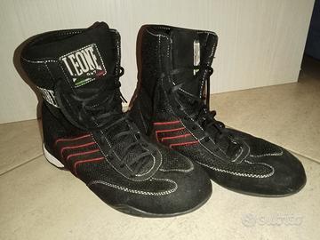 Scarpe Leone da boxe, numero 43; sono in buono stato, con lacci bianchi in aggiunta (nel caso si vogliano mettere al posto di quelli neri che al momento sono sulle scarpe).