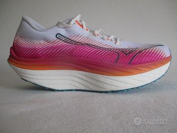 Questo modello di Mizuno è pensato per chi va forte, per quei runner “di livello élite che puntano a correre una maratona completa in meno di 2 ore e mezza”.