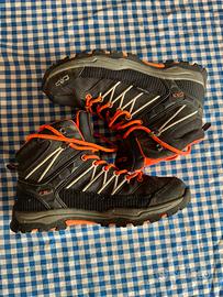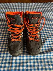 Vendo scarpe montagna CMP Kids Rigel Mid n. 38. In pelle, waterproof. In ottimo stato. Colore antracite/arancio. Perfette per trekking, escursioni. Consegna a mano o spedizione.