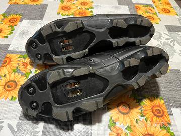 Scarpe usate pochissime volta a causa taglia errata. Manca il cartellino interno che attesta la misura, ma si presentano leggermente più grandi di un 45 delle altre scarpe da MTB.