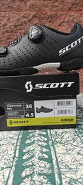 scarpe MTB junior Scott Future Pro, taglia 36 (4.5 US), colore nero/bianco, sistema di chiusura con boa. Senza racchette. Usate pochissimo, vendo per cambio taglia.