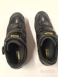 Vendo scarpe Mountainbike Mavic tg. 43,5 in buono stato (usate principalmente sui rulli). Hanno lieve difetto su tessuto zona malleolo e pelle "screpolata" (ma non rotta) in zona marchio, come foto... Sono lavate e igenizzate e perfette x tutto il resto