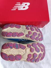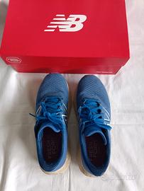 Scarpe New Balance, modello Evoz, con tecnologia dell'imbottitura Fresh Form, da running, ottime per correre, per camminare ma anche da calzare tutto il giorno. Il colore è bluette, usate.
