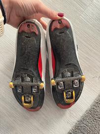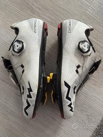 Vendo scarpe per bici da corsa da donna marca Nortwave colore bianco e nero, numero 38, attacco shimano con relativi pedali compatibili inclusi. Modello scarpe extreme gt.